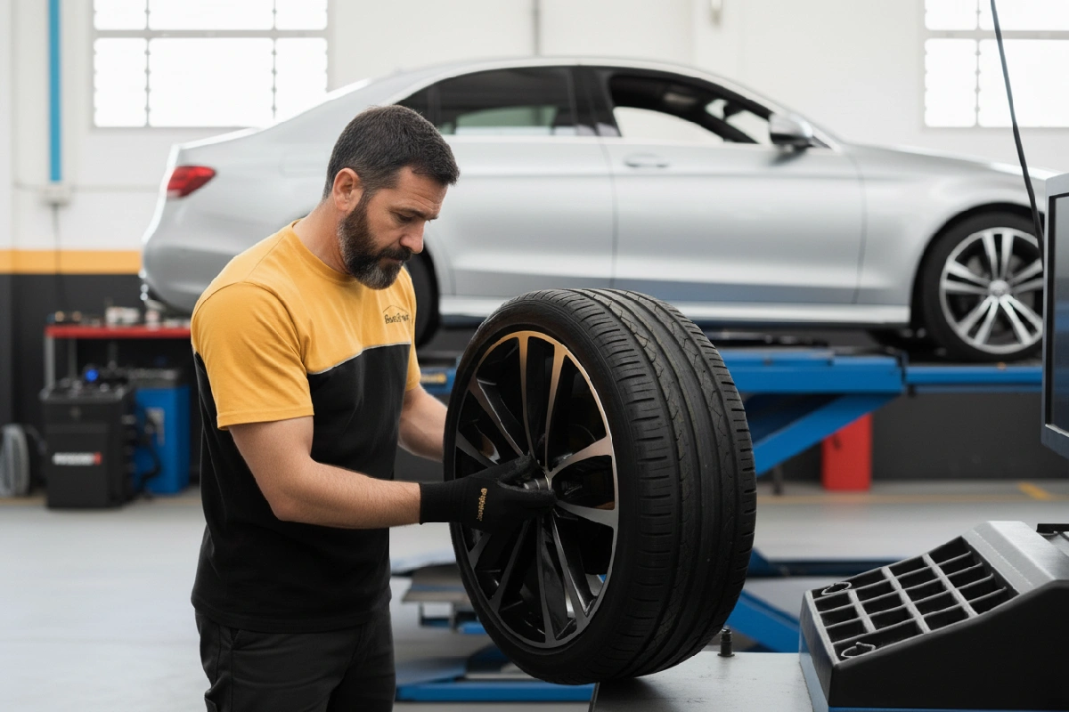 Montaggio Nuovi Pneumatici: Montiamo gli pneumatici scelti sui cerchi, seguendo scrupolosamente le specifiche della casa produttrice.